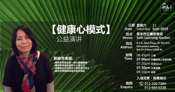 日期:21/9/2019(星期六) 时间:6.45pm-9.10pm 地点:马来西亚賽斯學苑 课程询问/报名:012-250 7384 / 012-669 6338